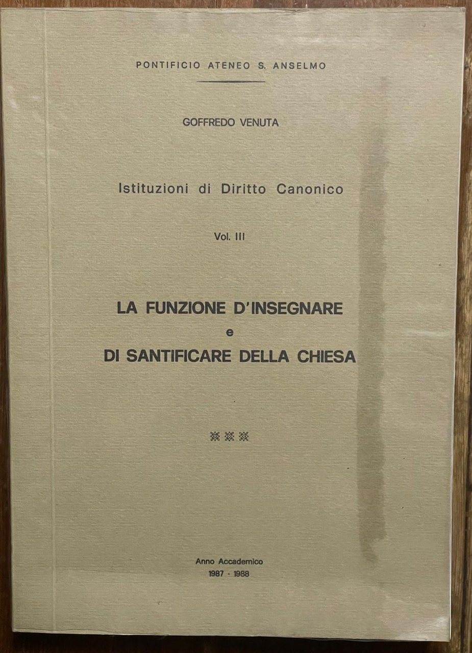 istiruzioni di diritto canonico la funzione d'insegnare e di sanificare della chiesa vol III
