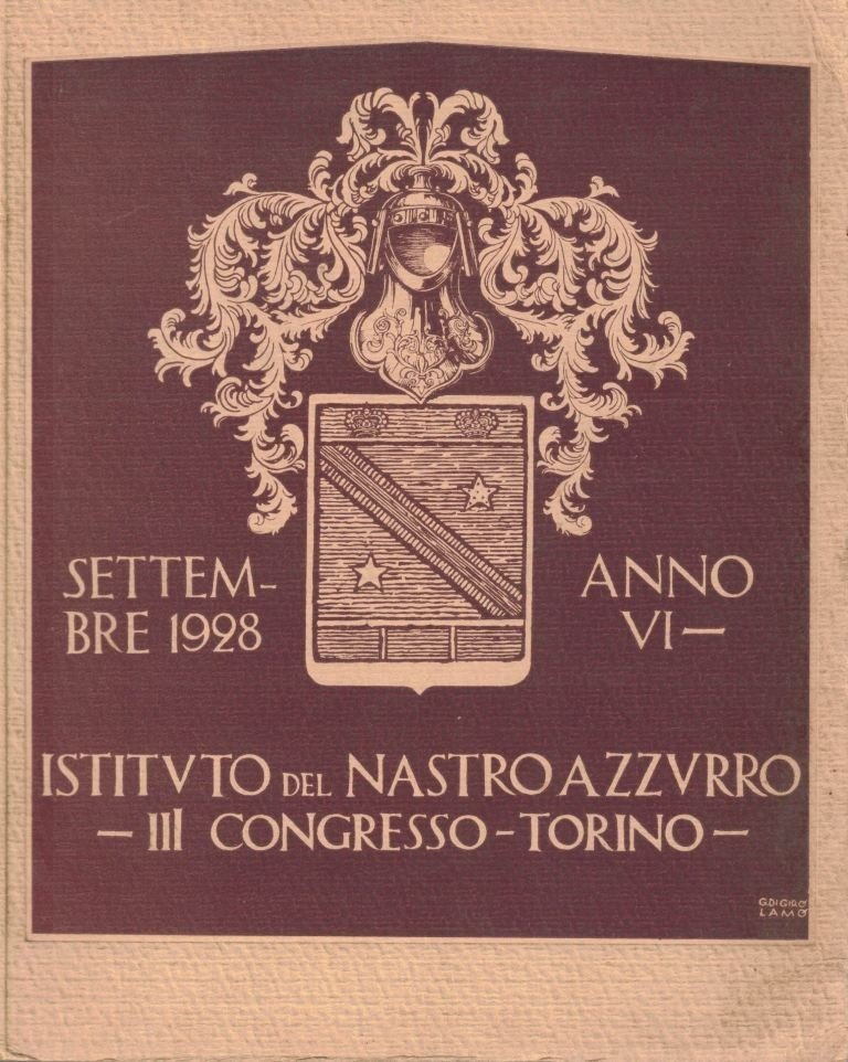 Istituto del Nastro Azzurro fra Combattenti Decorati al Valor Militare eretto in Ente Morale con Regio Decreto 31 maggio 1928 n. 1308, III Congresso Generale, Torino XVI-XX settembre 1928-VI, Casa Editrice d’Arte Bestetti e Tumminelli, Milano-Roma s.d. (1928?), pp 105, ill. b.n., cm 25, br. ed. Leggere tracce d’uso, minime fioriture, per il resto ben conservato.