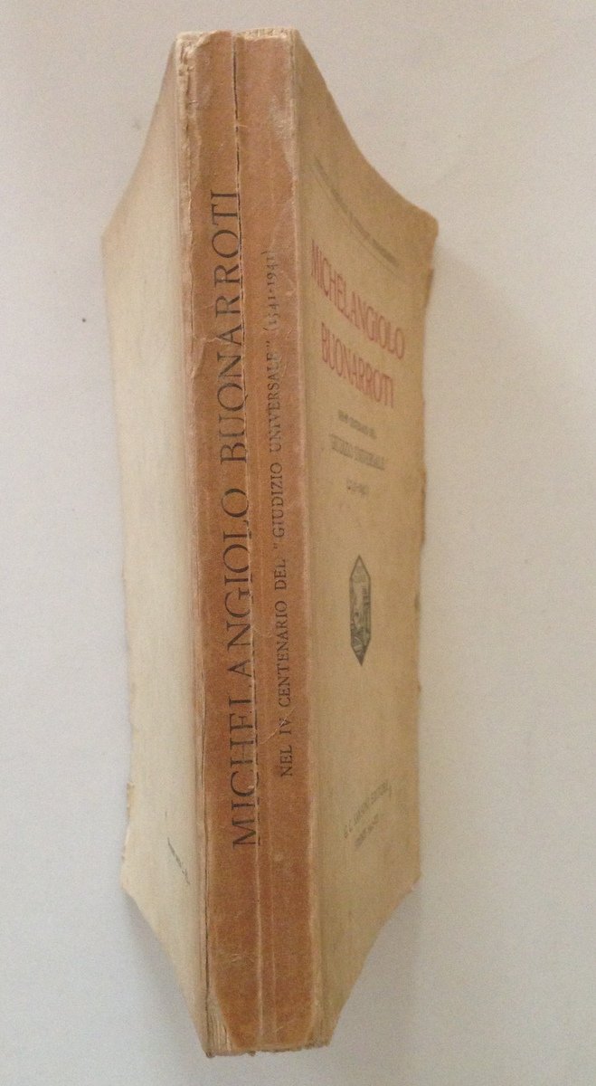 ISTITUTO NAZIONALE DI STUDI SUL RINASCIMENTO, MICHELANGIOLO BUONARROTI NEL IV CENTENARIO DEL GIUDIZIO UNIVERSALE" (1541-1941) FIRENZE, SANSONI 1942, in 8°, pp. 309 con tavv f.t., br.ed. Condizioni di conservazione Esemplare in buono stato con tracce d'uso e con bruniture; brossura editoriale con alcune pieghette e strappetti ai margini, agli angoli e al dorso; dorso fessurato restaurato, ma interni buoni, corpo ben saldo. MM1109.E3-112 "