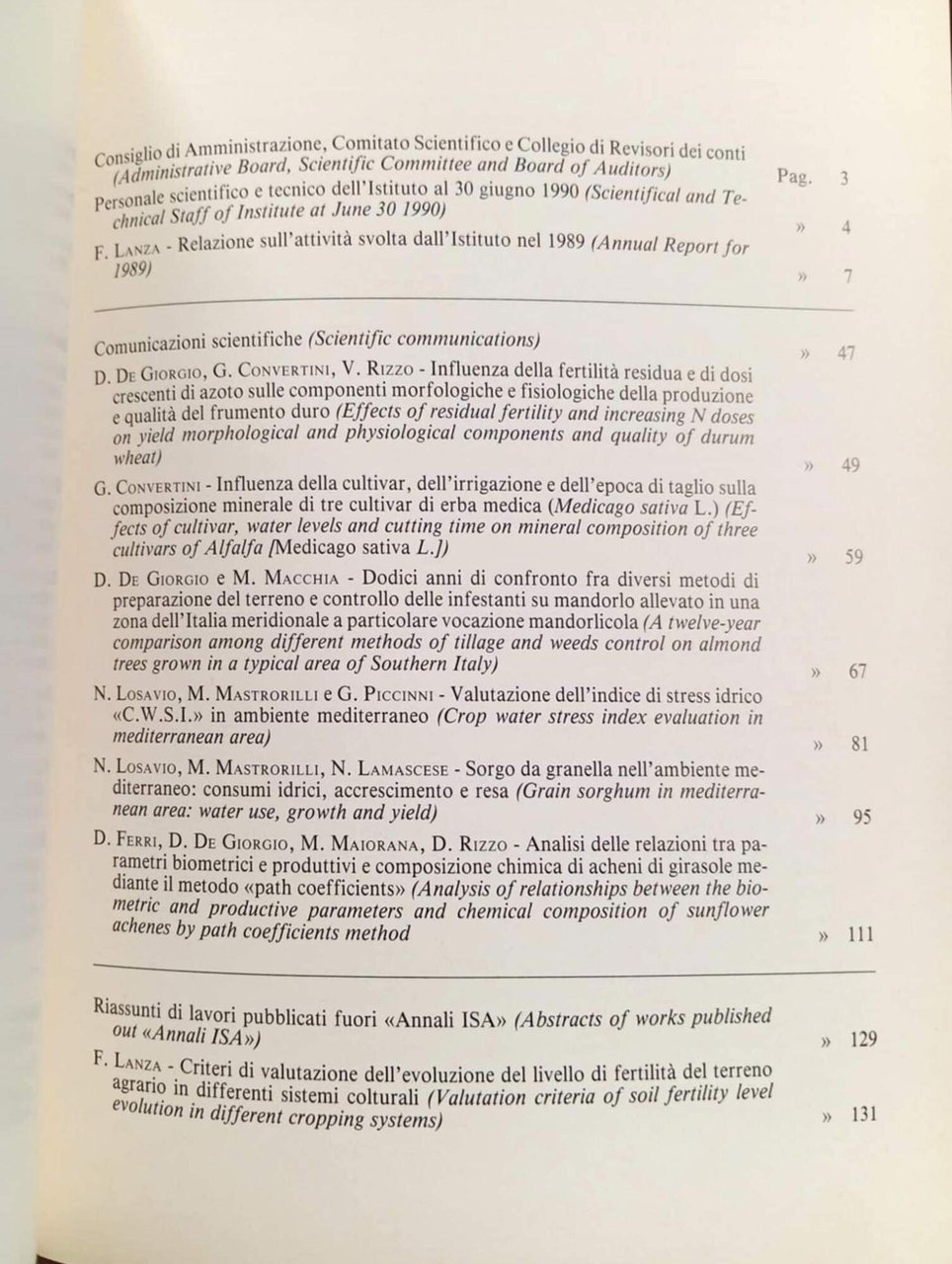 Istituto Sperimentale Agronomico, Bari. Annali - vol. XX, 1989