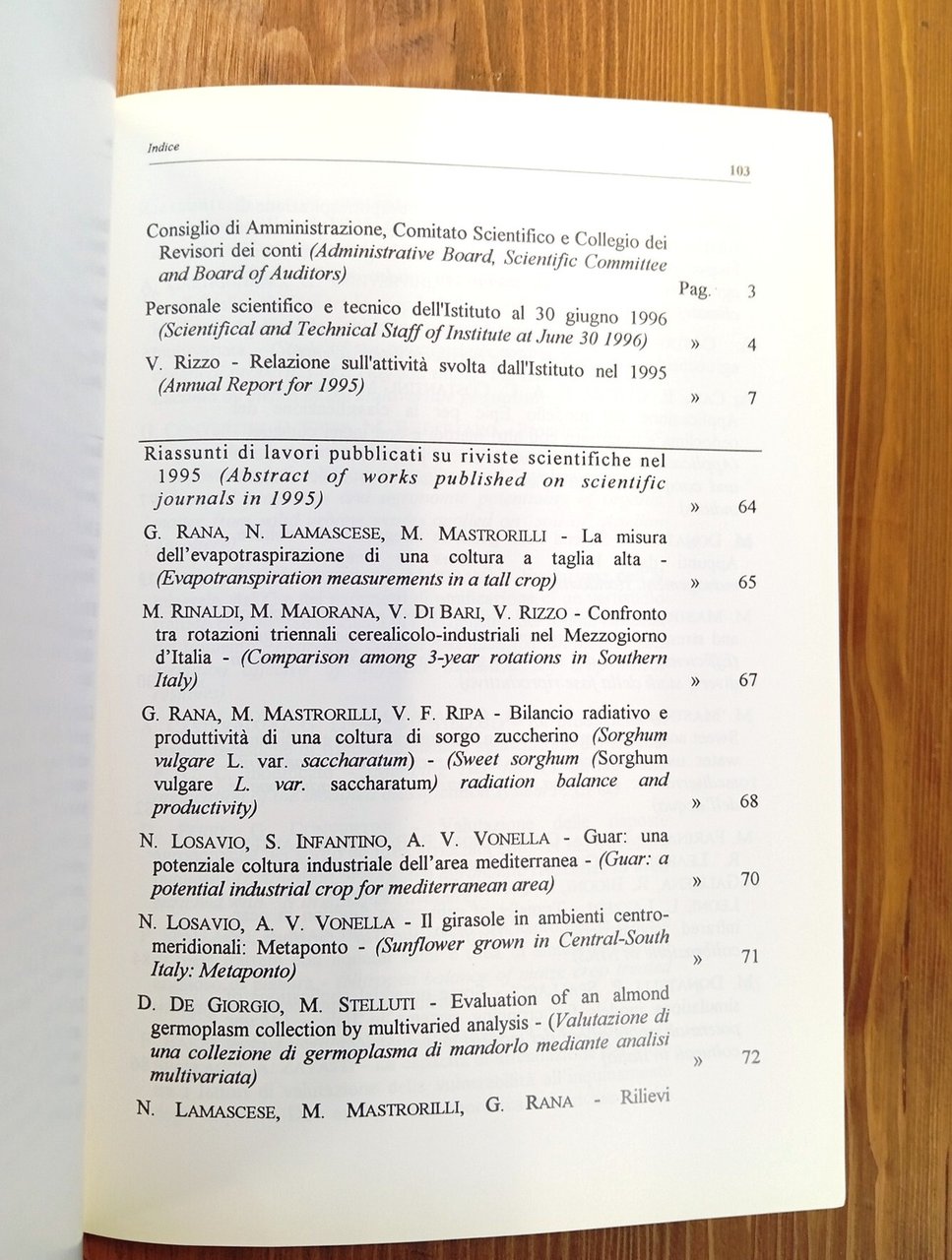 Relazione delle attività dell'Istituto per l'anno 1995 / Institute annual report for 1995 - Brossura editoriale di 106 pagine. Riassunti in italiano e inglese / Italian and English abstracts. Indice integrale consultabile nelle nostre immagini / Full index in our pictures. Copia eccellente.