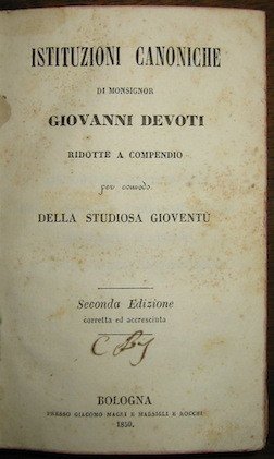 Istituzioni canoniche ridotte a compendio per comodo della studiosa gioventù. Seconda edizione corretta ed accresciuta