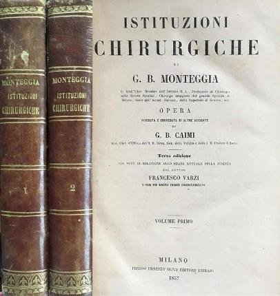 Istituzioni chirurgiche. Due volumi. Opera riveduta e corredata di altre aggiunte da G. B. Caimi. Terza edizione con note in relazione allo stato attuale della scienza del dott. Francesco Varzi e con un nuovo indice circostanziato.