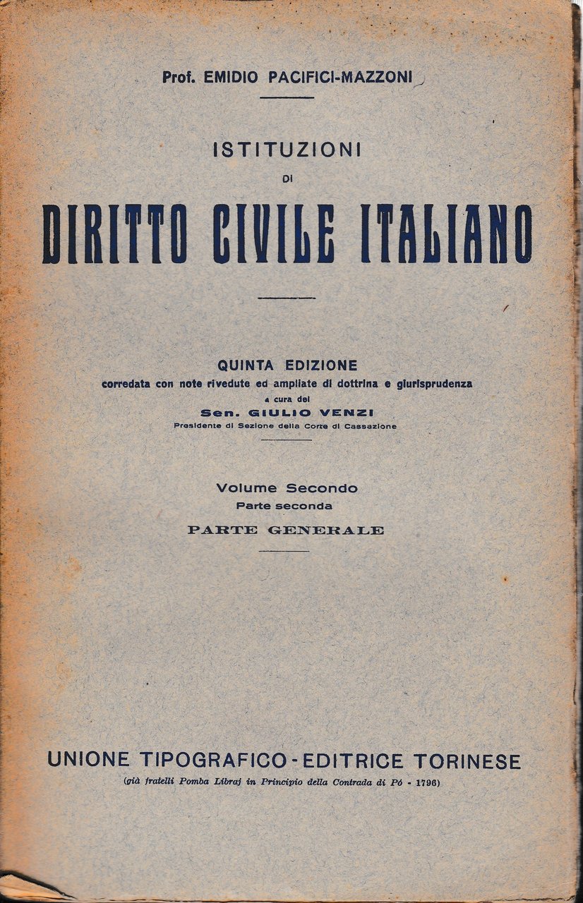 Istituzioni di Diritto Civile Italiano 2^ vol. parte seconda Parte generale esercizio, difesa e garanzia dei diritti