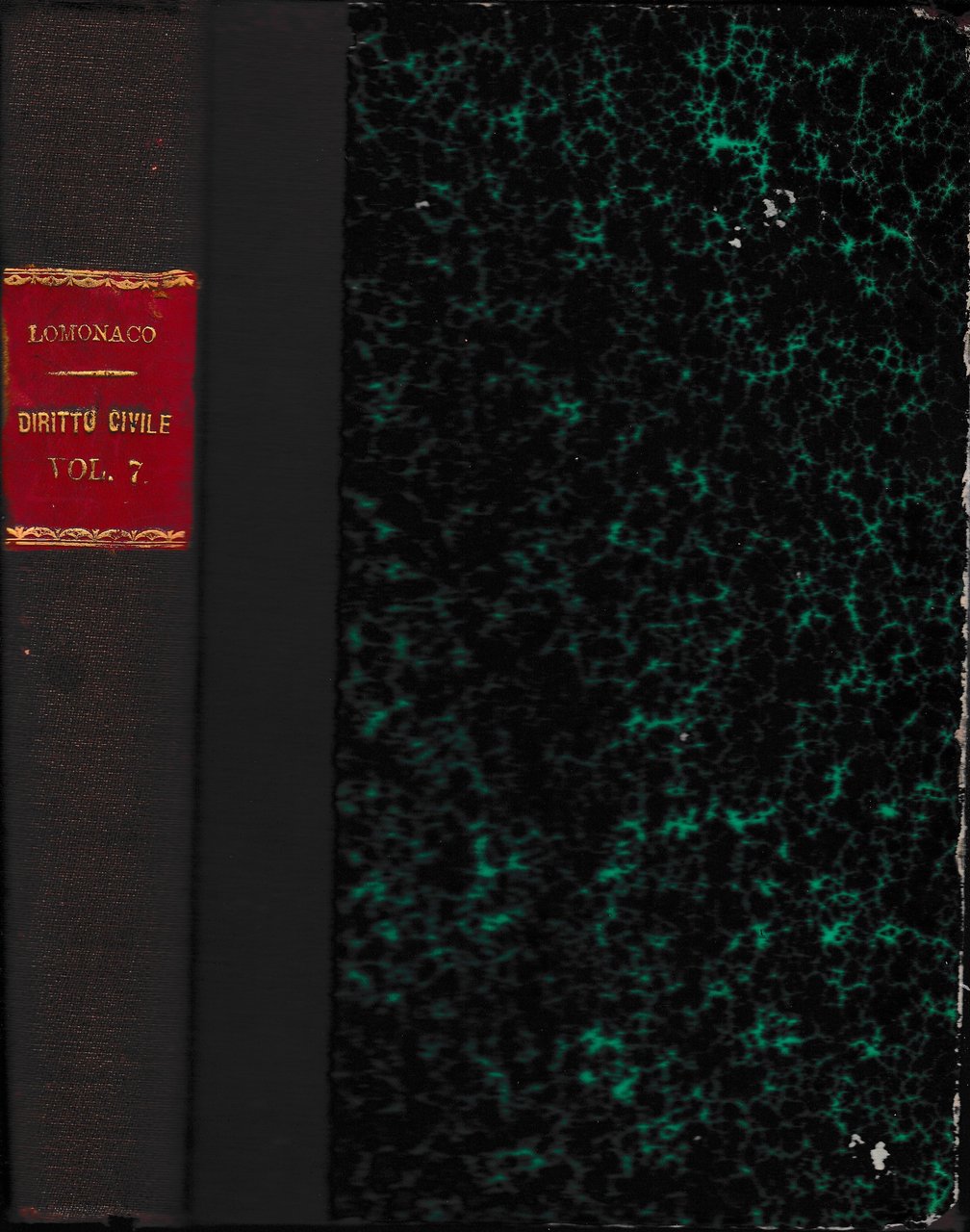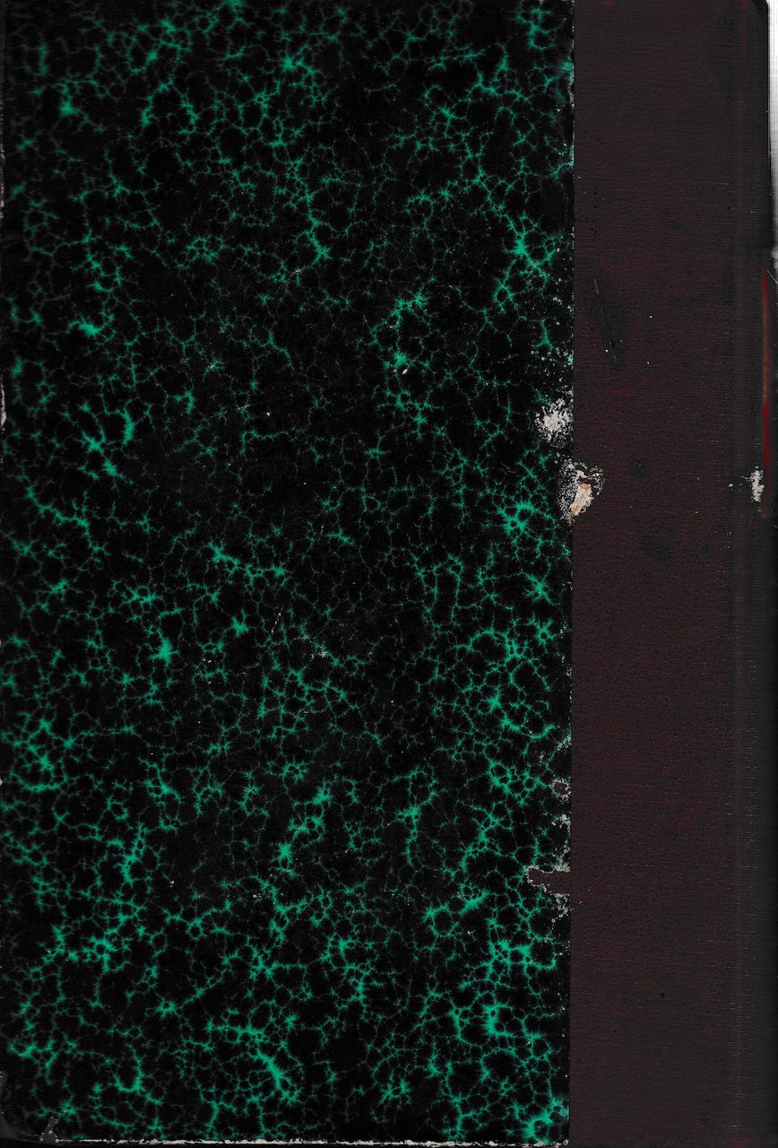 Legatura artigianale. Copertina marmorizzata con banda e titolo dorato al dorso, lievemente sporcacon graffi ai piatti. Tagli sporchi di polvere e bruniti. Pagine ingiallite brunite ai margini. Bordi stanchi con graffi.