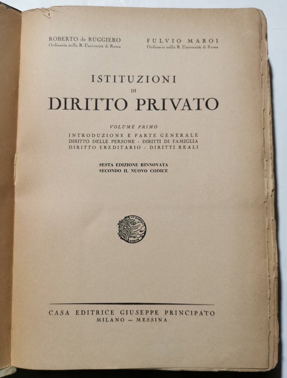 Istituzioni di diritto privato - Volume primo: Introduzione e parte generale, diritto delle persone, diritti di famiglia, diritto ereditario, diritti reali