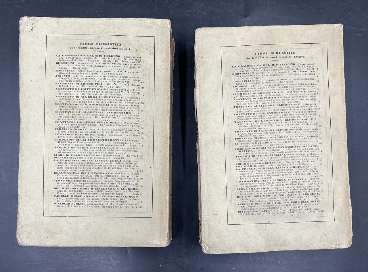 Opera completa in 2 voll. in-8° (cm. 21,6x14,3), pp. VIII, 716, 696. Bross. edit., fessure ai dorsi, alc. fioriture, ma eccellenti es. nelle loro barbe.