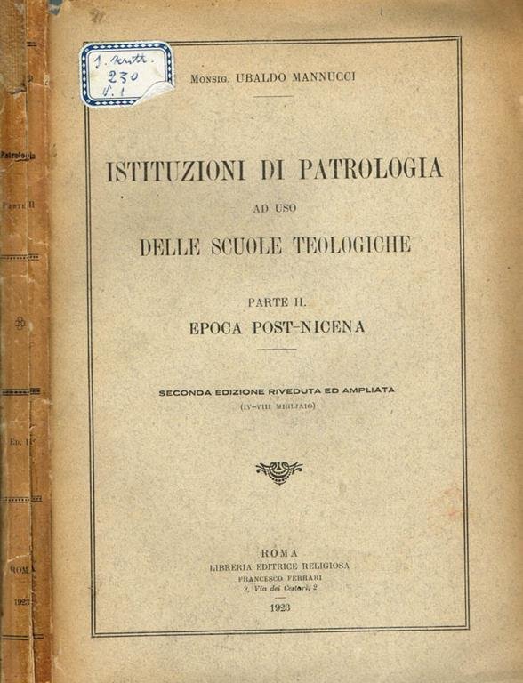 Parte seconda. Epoca post-nicena. Quinta edizione riveduta corretta ed ampliata dal P. Antonio Casamassa. Segni del tempo, buona condizione generale