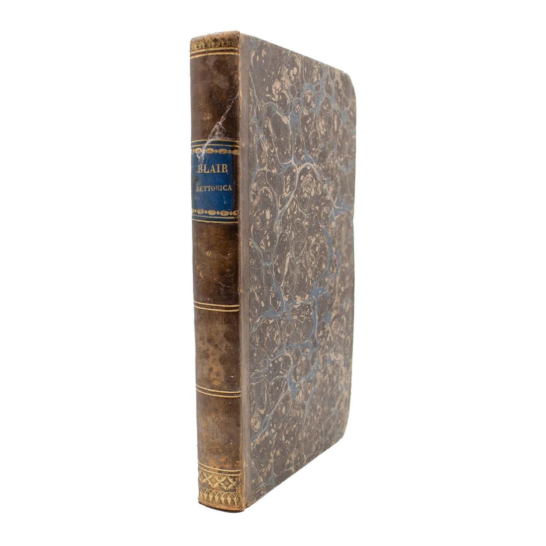 Istituzionidi rettorica, e di belle letteretratte dalle lezioni di Blair daFrancesco Soave C.R.S. ad uso de' licei, e dei ginnasidel Regno d'Italia Tipografia di Vigevano. 1808 Dimensioni: 14 x 21.5cm Pagine: 511 Copertina: Rigida, piatti marmorizzati, dorso in pelle. Condizioni: Buone come da immagini.