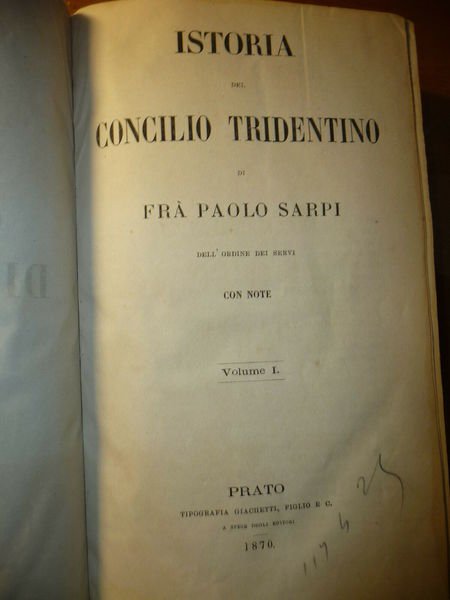 ISTORIA DEL CONCILIO TRIDENTINO DI FRA PAOLO SARPI DELL'ORDINE DEI SERVI 1870