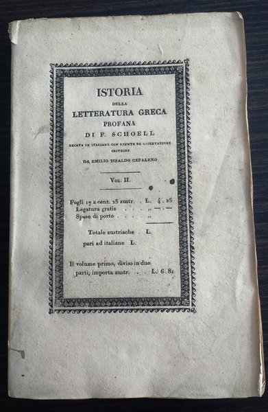 Vol. 1 parti I^ e II^: giunte e osservazioni di Emilio Tipaldo Cefaleno, Venezia tipografia Alvisopoli. I 2 voll sono intonsi e presentano solo piccole macchie e fioriture qua e la, per il resto sono in ottimo stato. Brossura