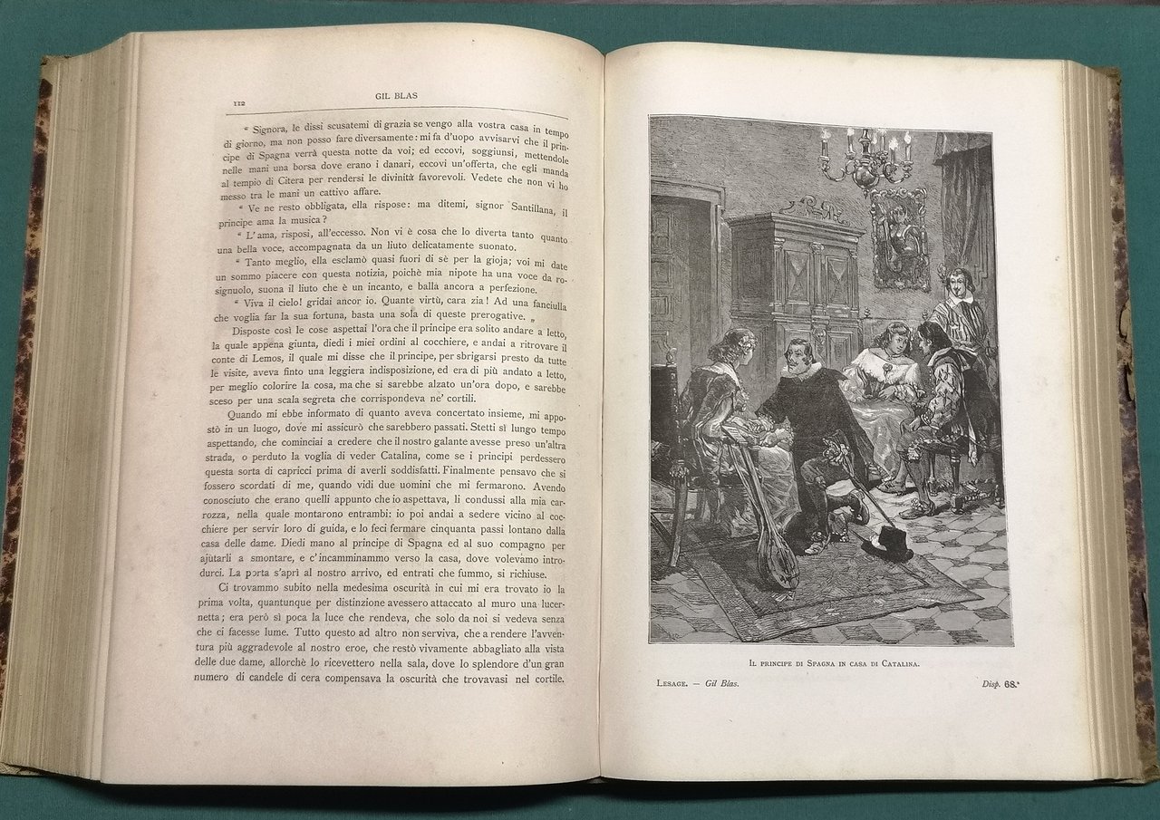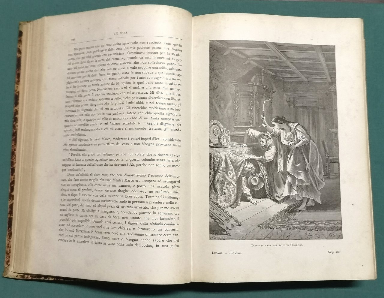 >2 voll. in 1 tomo in-4, pp. 422, (2); 380, (4); con numerose vignette e tavole a p. pagina di F. Philippoteaux e Pellicer. Legatura coeva in m. pergamena, titolo in oro su tassello al dorso, coperte editoriali figurate conservate. Buon esemplare, sporadiche bruniture comuni a tutti gli esemplari.