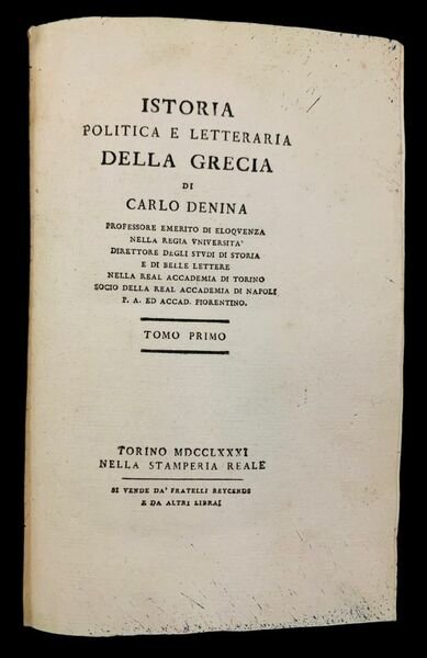 Istoria Politica e Letteraria della Grecia Libera di Carlo Denina, Professore Emerito di Eloquenza nella Regia Università, Direttore degli Studi di Storia e di Belle Lettere nella Real Accademia di Torino, Socio della Real Accademia di Napoli,