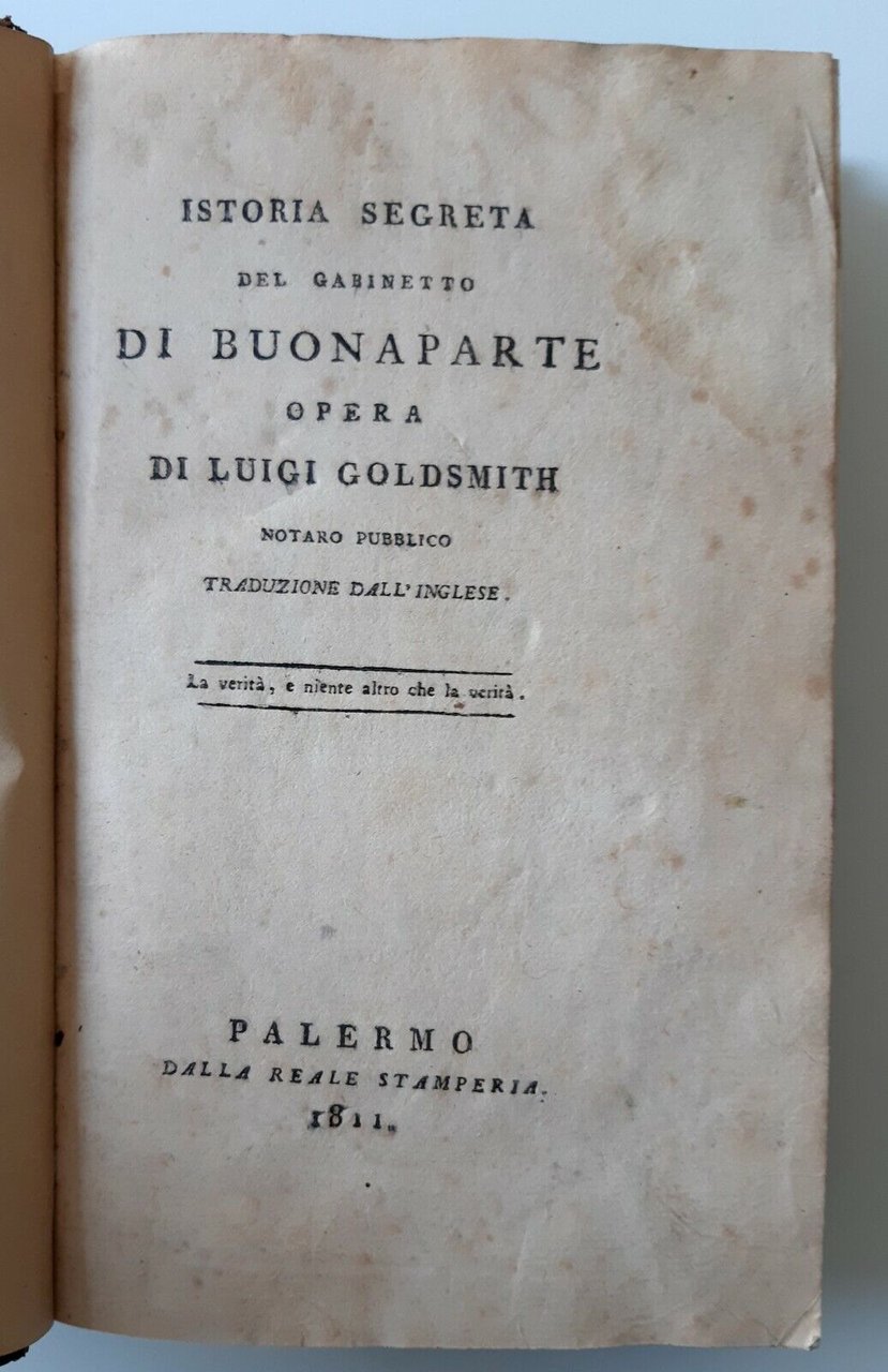 ISTORIA SEGRETA DEL GABINETTO DI BUONAPARTE OPERA LUIGI GOLDSMITH PALERMO 1811