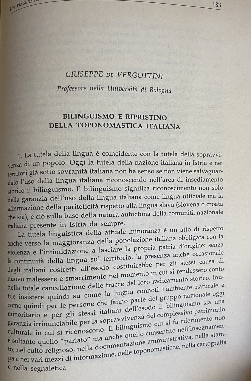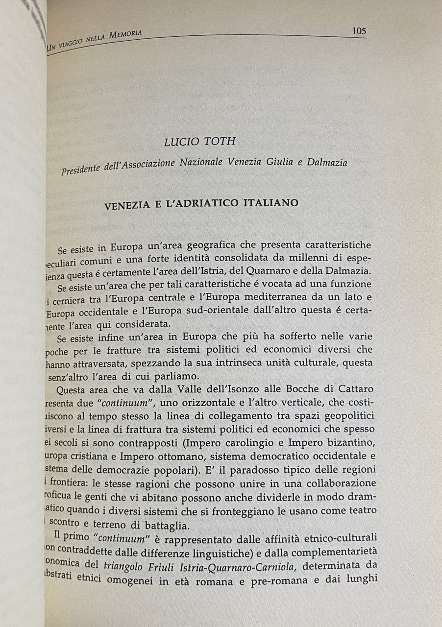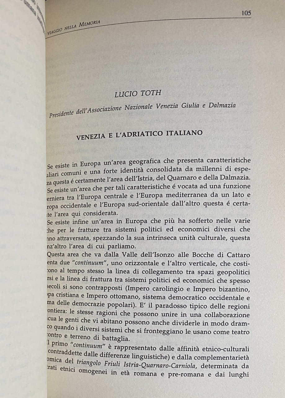 Soggetti: Dalmazia Cultura Istriana Trieste Cartografia Adriatico I.R.C.I. Scienze geografiche storiche Documentazione Studi storici Storia contemporanea Interventi Relazioni Histri Romani Filosofia Bisanzio Venezia Cartografi Lucio Toth Venezia-Giulia Irredentismo Giacomo Venezian Marina Militare Conflitto navale Esercito serbo Regia Beni architettonici artistici Centro storico Ragusa Politica Diritti civili Veneto Quarnaro Università Comunità italiane Fiume Bilinguismo Toponomastica Giorno Ricordo Tragedie Eccidio Fascismo Seconda Guerra mondiale Foibe Esodo giuliano-dalmata Popolazione italiana Viaggio Memoria Luoghi Persecuzioni Confine orientale Confini Geopolitica Jugoslavia Lingua Identità Minoranze etniche Violenze Esuli Magazzino 18 Porto Città adriatiche Saggi Libri rari fuori catalogo Terre Roma Guerre Tito Italiani Sponda Aquileia Costantinopoli Alessandria d'Egitto Alpi Balcani Pola Zara Spalato Sebenico Serenissima Repubblica Napoleone Austria Grande Nazisti Miliziani Deportazioni Annegamenti Popolo Albona Belgrado Bocche di Cattaro Capodistria Cherso Chiesa Comunisti Conquista Croazia Dalmati Doge Enzo Bettiza Etnico Europea Friuli Frontiera Giovanni Palatucci Guliani Gorizia Governo Grado Illiriche Isole Liburni Litorale Longobardi Lubiana Luxardo Mare Navi Nazionale Nesazio Ottavio Missoni Padova Palazzo Parenzo Partigiani Patriarca Pirati Pisino Profughi Regime Rovigno San Marco Scandaletti Scuole Slavi Sloveni Croati Split Tedeschi Territorio Titini Triestini Zaratino Trento Tobruk Libia Mussolini D'Annunzio Impresa Descriptio Histriae Claudio Rossit Riva occidentale Carniola Isonzo Caporetto Monfalcone Sovranità Tutela linguistica Dalmatia Istrian Culture Cartography Adriatic Historical Geographical Sciences Documentation Studies Contemporary History Interventions Relations Romans Philosophy Byzantium Venice Cartographers Irredentism Navy Naval Conflict Serbian Army Royal Artistic Architectural Heritage Historic Center Politics Civil Rights Kvarner University Italian Communities River Bilingualism Toponymy Day Remembrance Tragedies Massacre Fascism Second World War Julian-Dalmatian Exodus Population Journey Memory Places Persecutions Eastern Border Borders Geopolitics Yugoslavia Language Identity Ethnic Minorities Violence Exiles Port Cities Essays Rare Books Out of Print Lands Rome Wars Constantinople Alexandria of Egypt Alps Balkans Pula Zadar Sibenik Republic Napoleon Great Nazis Militiamen Deportations Drownings People Labin Belgrade Bay Kotor Koper Church Communists Conquest Croatia Dalmatians European Frontier Government Illyrian Islands Coast Lombards Ljubljana Sea Ships National Nesactium Padua Palace Partisans Patriarch Pirates Pazin Refugees Rovinj Schools Slavs Slovenians Croats Germans Territory Libya Enterprise Western shore Sovereignty Linguistic protection