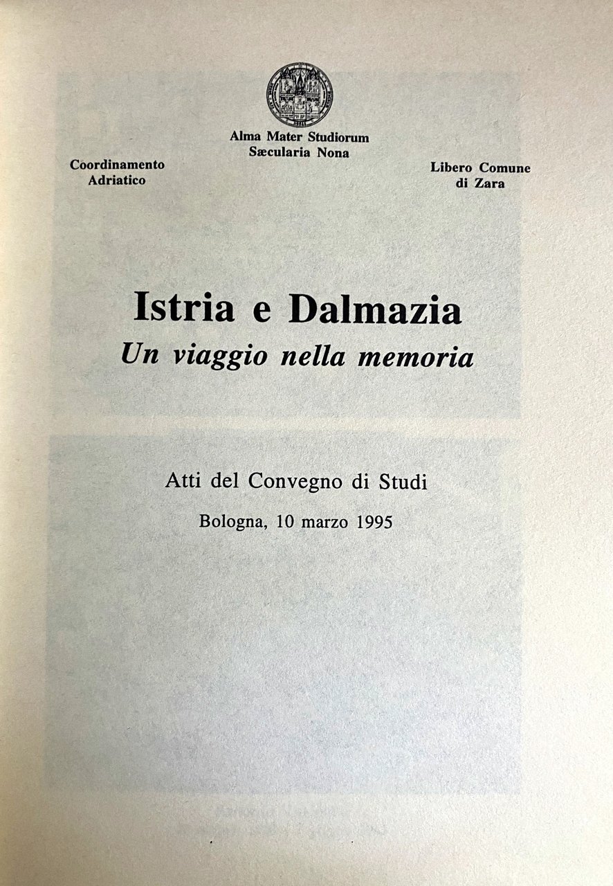 ISTRIA E DALMAZIA. UN VIAGGIO NELLA MEMORIA. ATTI DEL CONVEGNO DI STUDI BOLOGNA, 10 MARZO 1995