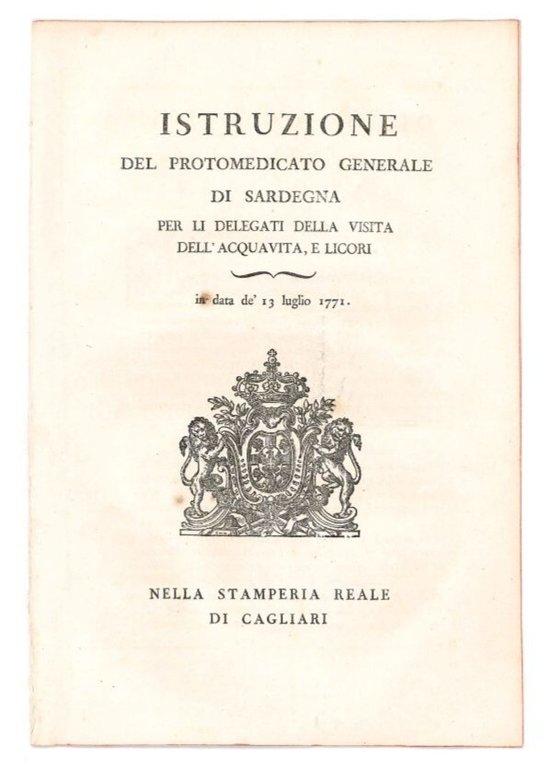 Istruzione del protomedicato generale di Sardegna per li delegati della visita dell'acquavita, e licori.