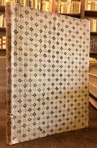 Folio (cm. 29), 4 pp.nn. (compreso frontespizio allegorico disegnato dall’A. e inciso su rame da Carlo Lasinio), XXXVII pp., 17 pp.nn. Con 17 illustrazioni su 13 tavv. calcografiche. Bella legatura d’epoca in cartoncino decorato. Tagli rossi. Esemplare in eccellente stato di conservazione. Prima edizione. L’opera, scritta appositamente per l’insegnamento, primo manuale di questo genere, tratta della scultura in ‘terra’, in ‘cera’, dei ‘Modelli in Gesso’, ‘Delle diverse maniere di lavorare in stucco’, della ‘Scultura in pietra, e marmo’, ‘Del modo di restaurare le Sculture antiche’, ‘Dei lavori in Bronzo’ e, infine, ‘Della forma e parti componenti uno Studio di Scultura’. Rappresenta dunque una sintesi della pratica in uso nelle botteghe settecentesche di scultura. Francesco Carradori (Pistoia 1747-1824), figlio di Giuseppe, iniziò in giovane età a scolpire soprattutto in creta, riuscendo ad ottenere assai precocemente la fama e protezione da parte di facoltose famiglie toscane. Cfr. Brunet I, 1598; Cicognara, n. 306.