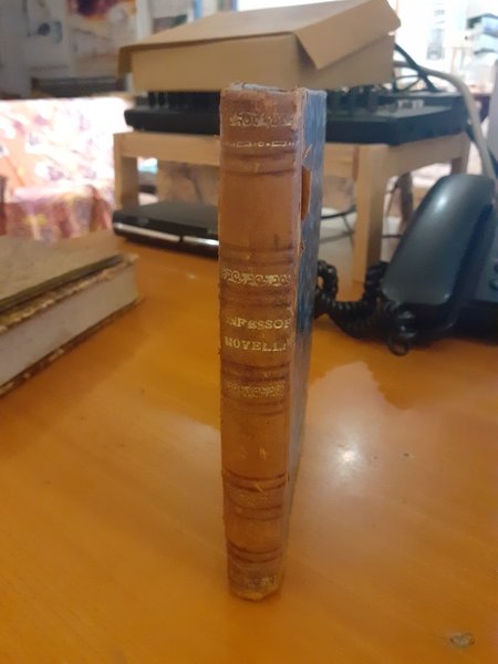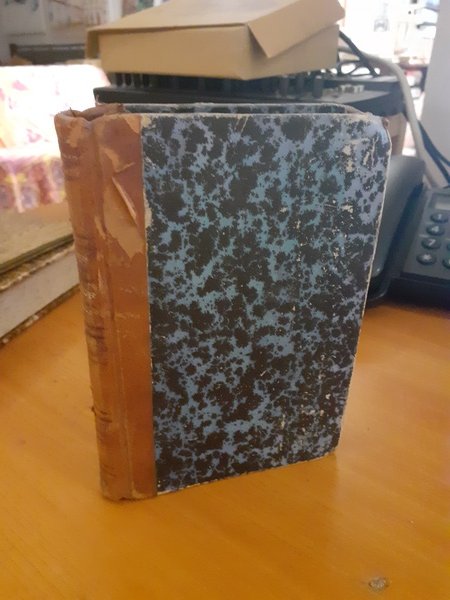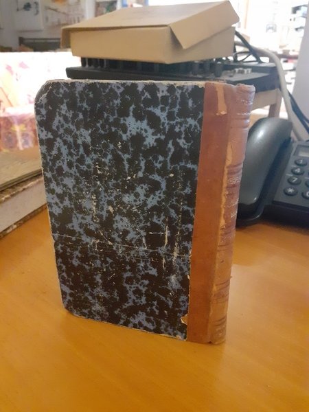 Rilegata in semipelle e carta marmorizzata, con scritte e decorazioni in oro zecchino.