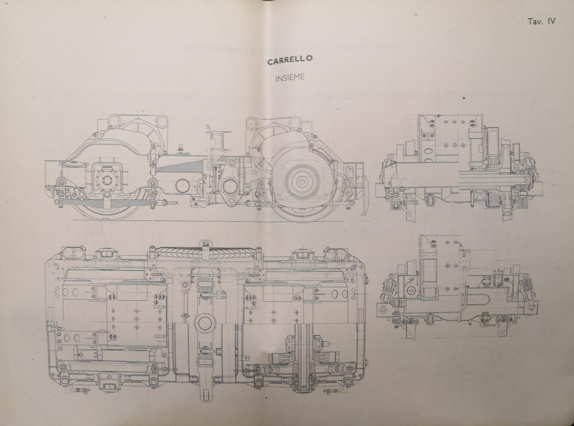 Album in-4 gr. (mm. 348 x 480), cartonato editoriale rileg. con punto metallico, pp. (4), con 42 tavole (la 39 è bis), ciascuna con due o più figg. relative alle locomotive del Gruppo E 424 (schemi, dettagli, circuiti, motori, relais, etc., etc.). Esemplare ben conservato.