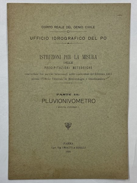 Spillato, cm18.5x27, pp 10 (2), una tavola in nero. Solo questa terza parte, in sé costituente le istruzioni per l’uso del pluviometro, con un facsimile dei moduli di annotazione delle osservazioni.