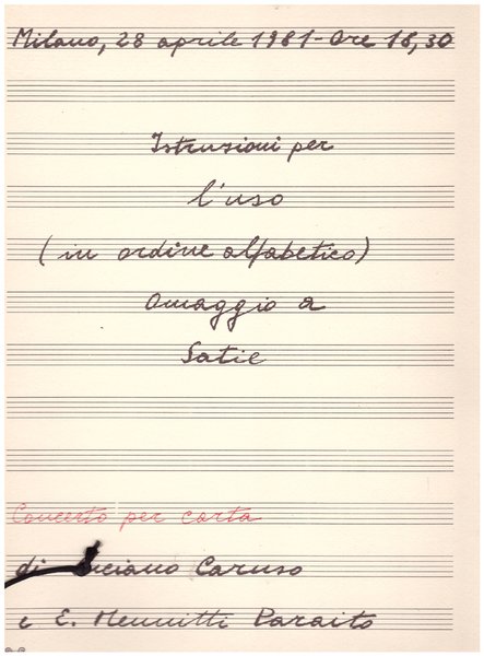 Istruzioni per l'uso (in ordine alfabetico). Omaggio a Satie. Concerto per carta