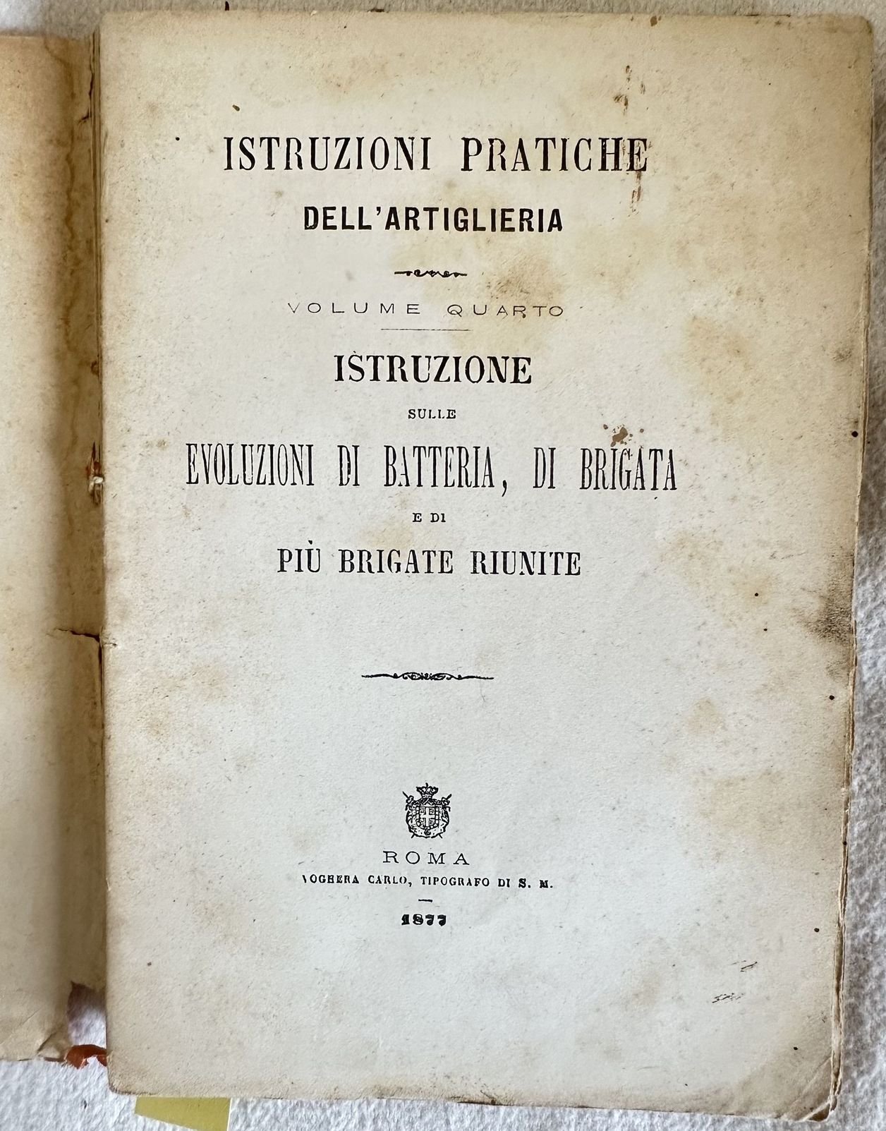 ISTRUZIONI PRATICHE DELL'ARTIGLIERIA VOLUME QUARTO ISTRUZIONE SULLE EVOLUZIONI DI BATTERIA DI BRIGATA E DI PIU BRIGATE RIUNITE