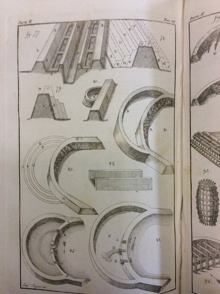 In-8 p. (mm. 222x132), mz. pelle coeva, fregi e titolo oro al dorso, pp. VIII,388, con 39 tavole fuori testo inc. in rame, ciasc. con numerose figure. Con una interessante memoria (di Agostino Masetti) circa il modo di riparare gli argini de' fiumi (massime quelli di Pò nel Mantovano) e con un cenno sul sistema col quale sono costrutte le strade di Milano. Nona edizione (la prima è del 1748). Fresco esemplare, ben conservato.