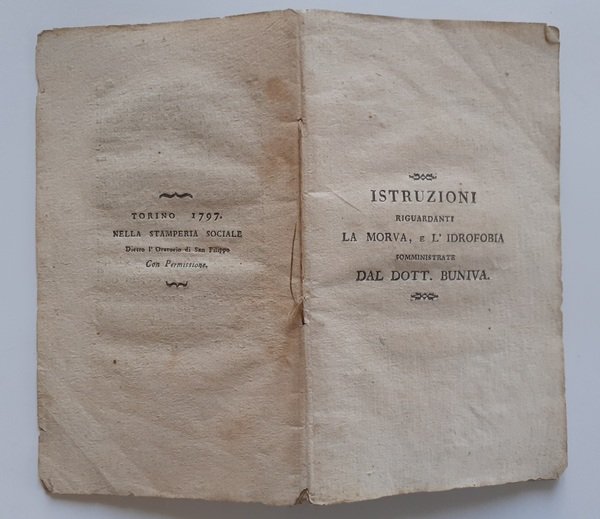 Istruzioni riguardanti la Morva, e l'Idrofobia somministrate dal Dott. Buniva.