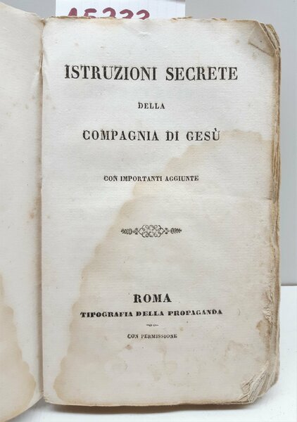 Istruzioni segrete della compagnia di Ges˘ con importanti aggiunte Tip. della propaganda 1830 c.a.