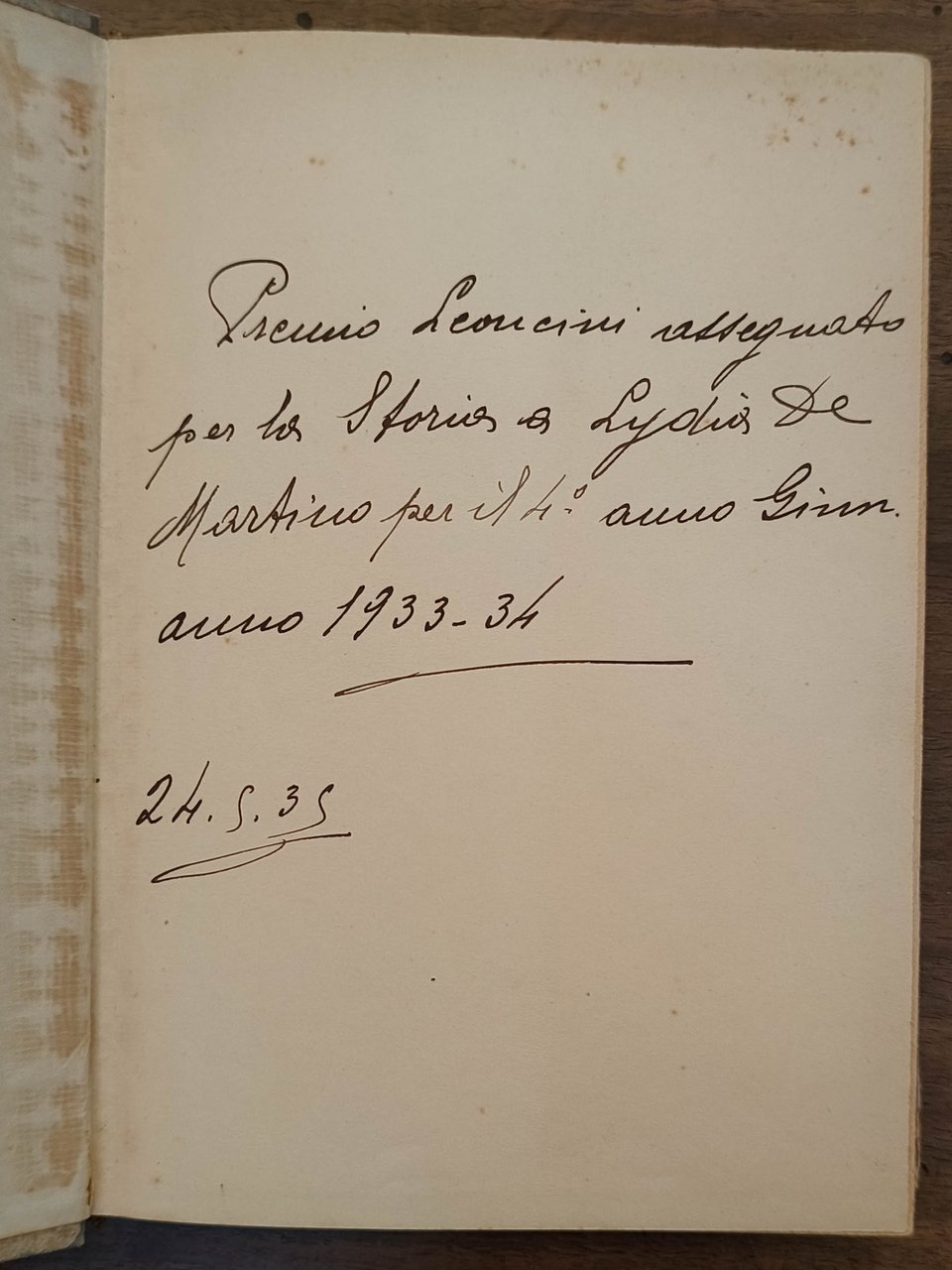 Italia antica sul mare, Milano, Hoepli, 1930. Cm 22,3. Pp. XXVIII 308. Legatura in mezza tela editoriale figurata. Buone condizioni, lievi abrasioni ai bordi dei piatti e carte leggermente brunite. 87 tavole in bianco e nero fuori testo, 24 figure nel testo. Premio Leoncini assegnato per la storia a Lydia Re Martino per il 4° anno 1933-34.