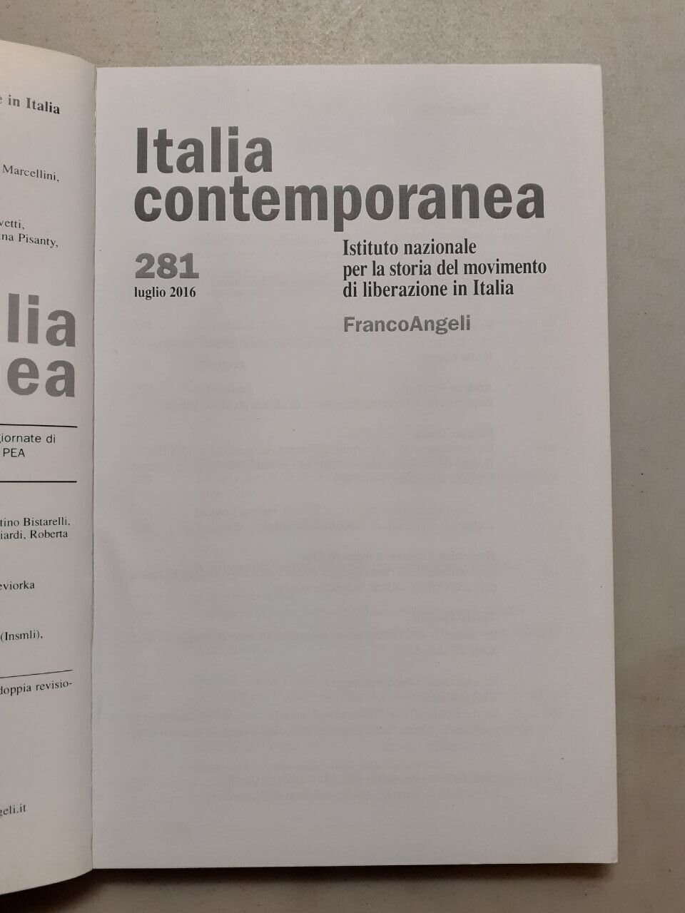 ITALIA CONTEMPORANEA 2016 (manca 280)[movimento di liberazione in Italia