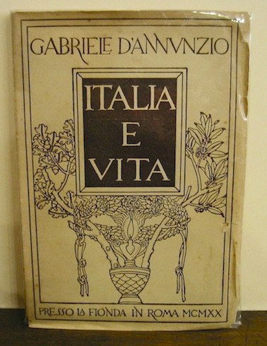 8vo (cm. 20), 98 pp. Brossura editoriale con fregi in bistro di Adolfo De Carolis. Al centro della cop. posteriore l’impresa ‘Circumacta validus’. Ottimo esemplare. Edizione originale. De Medici, 108; Guabello, 243; Vecchioni, 66.