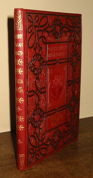 8vo (cm. 20), 98 pp. Legatura editoriale in tela rossa con titoli e fregi in marrone ed oro al piatto anteriore e al ds. A rilievo medaglione a sbalzo con l’impresa ‘Io ho quel che ho donato’. Taglio superiore rosso. Due ex libris cartacei al contropiatto anteriore. Ottimo esemplare. Edizione originale. Guabello, 244.