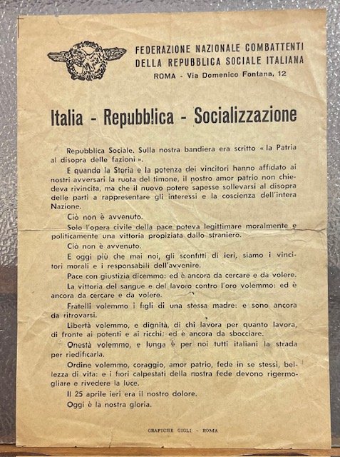 ITALIA-REPUBBLICA-SOCIALIZZAZIONE. Federazione Nazionale Combattenti della R.S.I.