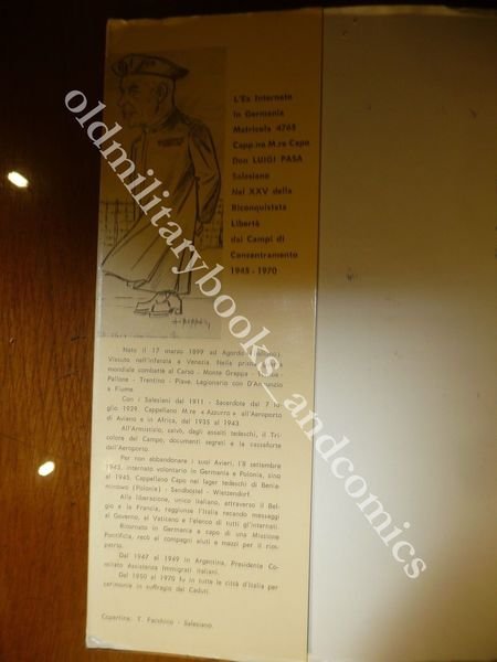 DESCRIZIONE: Arti grafiche Cafieri Castellamare 1971 I^ Ed., br. ed. ill. con risvolti pp. 138 con alcune ill. b.n. f.t. in 8°. Nel venticinquennale della Liberazione del rimpatrio dai campi nazisti 1945-1970. Don Luigi Pasa fu internato volontario in Germania e Polonia, Cappellano nei lager tedeschi di Beniaminowo, Sandbastel, Wietzzendorf. CONDIZIONI DELL'OGGETTO: Ottime. PESO/WEIGHT: 333 g without package