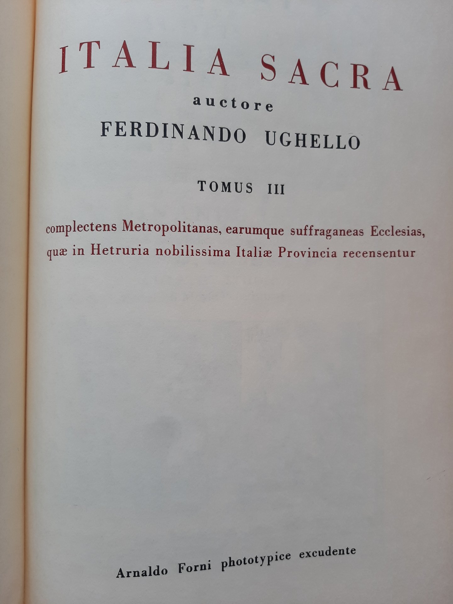 Italia sacra tomus 3: complectens Metropolitanas, earumque suffraganeas Ecclesias, quae in Hetruria nobilissima Italiae Provincia recensentur.