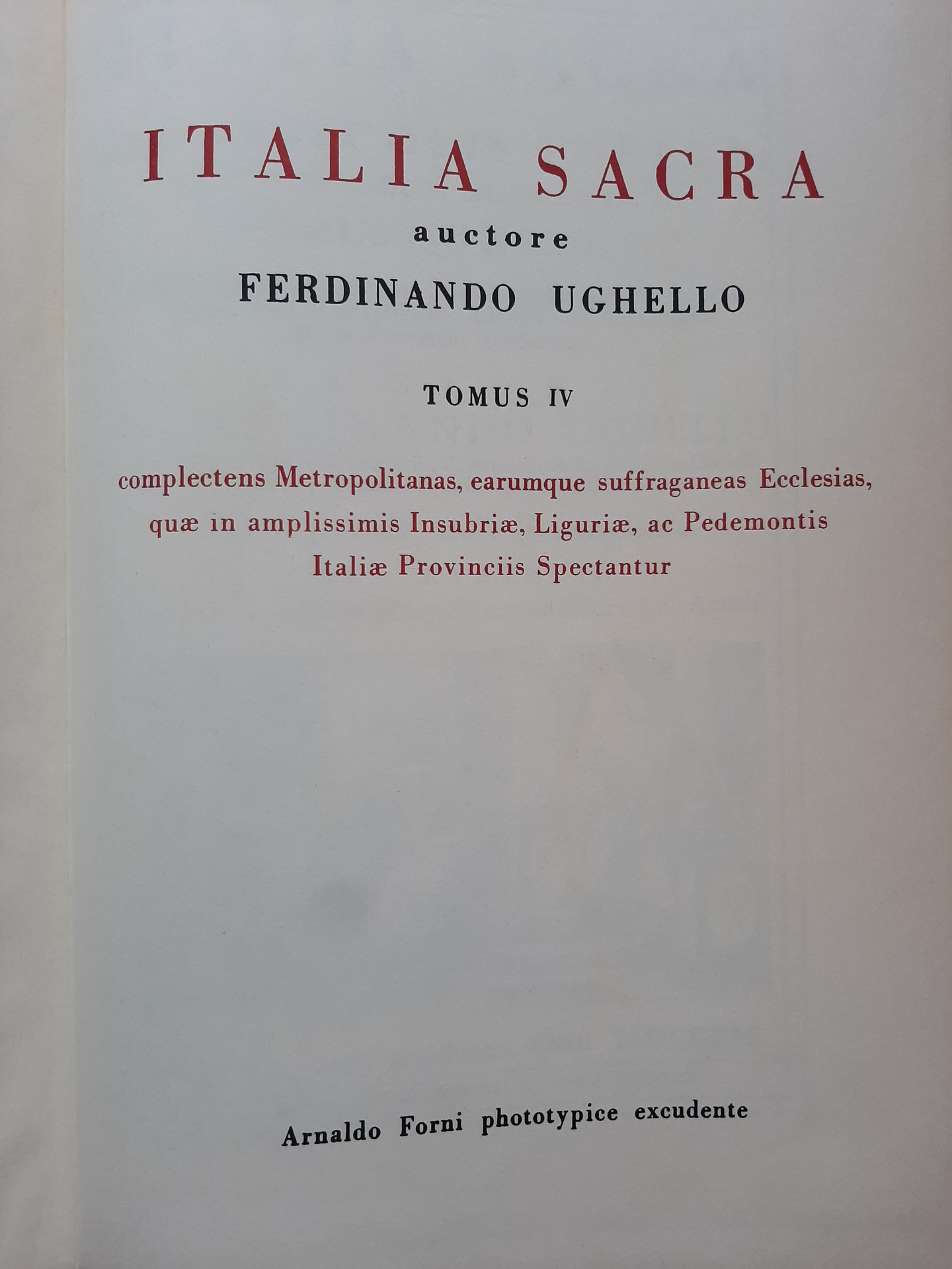Italia sacra tomus 4: complectens Metropolitanas, earumque suffraganeas Ecclesias, quae in amplissimis Insubriae, Liguriae, ac Pedemontis Italiae Provinciis Spectantur.