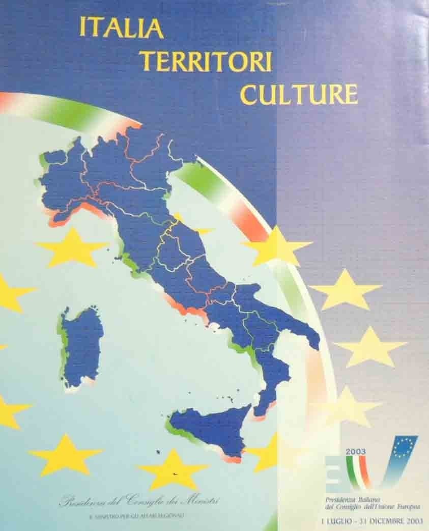Italia, territori, culture. Profili del paesaggio culturale italiano. Regioni, simboli, a cura della Presidenza del Consiglio dei Ministri – Dipartimento per l’Informazione e l’Editoria, Roma 2003, pp. 326, ill. col., cm 28, br. ed. Pubblicazione realizzata in occasione del semestre italiano Presidenza Italiana del Consiglio dell’Unione Europea, 1 luglio-31 dicembre 2003. In calce all’occhiello: Presidenza del Consiglio dei Ministri – Dipartimento per gli Affari Regionali – Dipartimento per l’Informazione e l’Editoria. Testi in italiano, inglese e francese. Lievissime tracce d’uso alla sovraccoperta, per il resto perfetto.