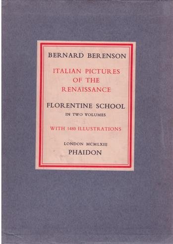 2 lingua: inglese 2 volumi, legatura edit.in tela con sovrac. e cofanetto editoriale, cm 27x19, pag. XIV + 222, seguono distribuite sui due volumi un totale di 1478 tavole in b.n. e 2 antiporta a colori, seguono 39 pag. di indice. - Volume I: XIV, col. frontispiece, 222 pp. text in English and plates with 590 b.w. ills. Volume II: col. frontispiece, plates with 888 b.w. ills. + 39 pp. (index). - Opera di riferimento sulla scuola fiorentina nella pittura italiana del rinascimento.