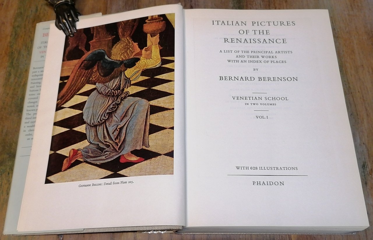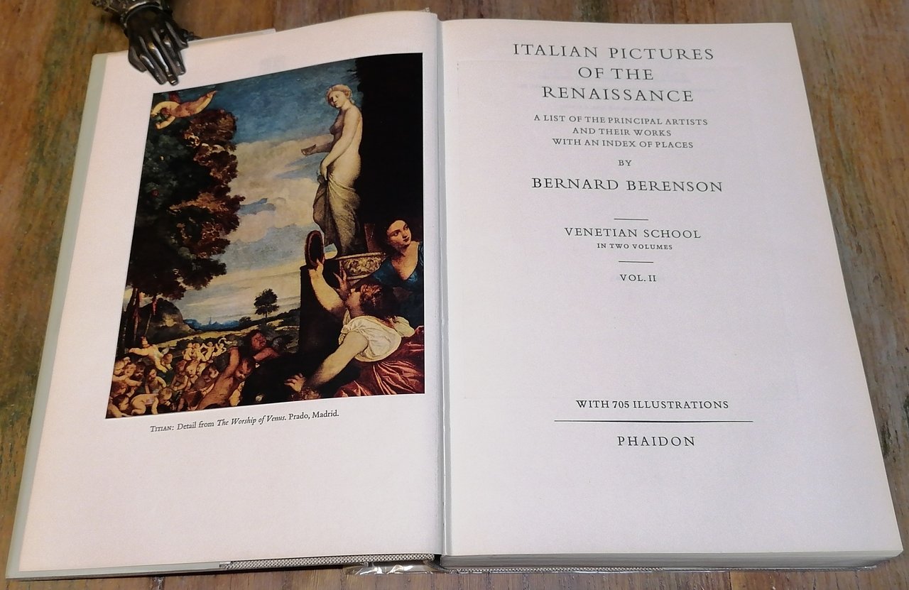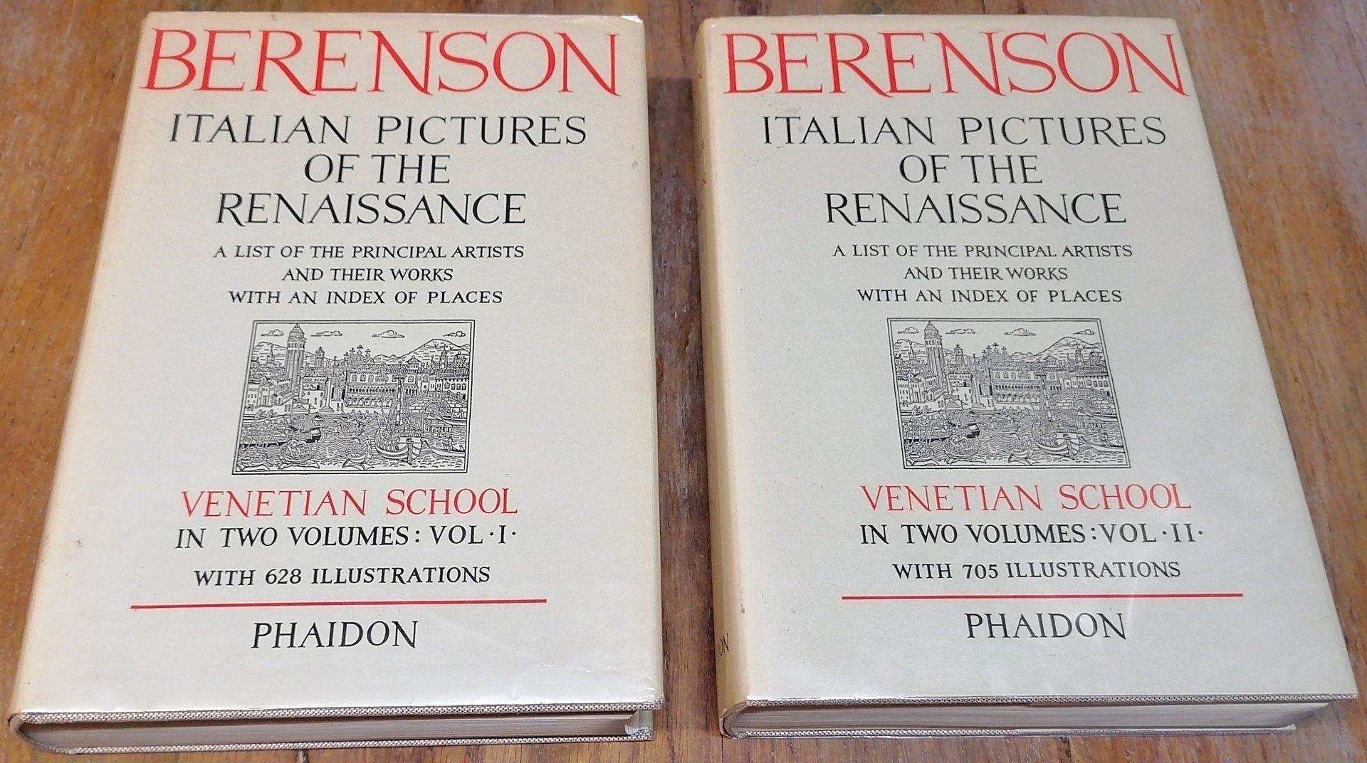 (Arte - Rinascimento - Pittura - Italia - Venezia) Due volumi in 8°, legatura editoriale in piena tela grigia con titoli impressi in marrone, sovraccoperte illustrate. Volume I : pp. XIV,(2),206,(2), con una tavola a colori applicata in antiporta e 628 illustrazioni in bianco e nero su tavole fuori testo. Volume II : pp. (8),44,(2), con una tavola a colori applicata in antiporta e 705 illustrazioni in bianco e nero su tavole fuori testo. Ottimo stato di conservazione.