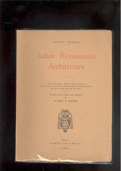 IN 8°, c.3, pp.182, COPERTINA EDITORIALE CON TITOLO IN ROSSO. UNA TAV.RIASSUNTIVA f.t. + v.r., 45 ILLUSTRAZIONI NEL TESTO, TAVV. 80 in b/n.f.t. CON 110 FOTOGRAFIE. GEORGES GROMORT ( 1870 - 1961 ), ARCHITETTO FRANCESE. HA INSEGNATO ALLA SCUOLA DI BELLE ARTI. TESTO IN INGLESE, TRADOTTO DAL FRANCESE DA GEORGE F. WATERS. PARZIALMENTE INTONSO, OTTIMA CONSERVAZIONE.ID 5549