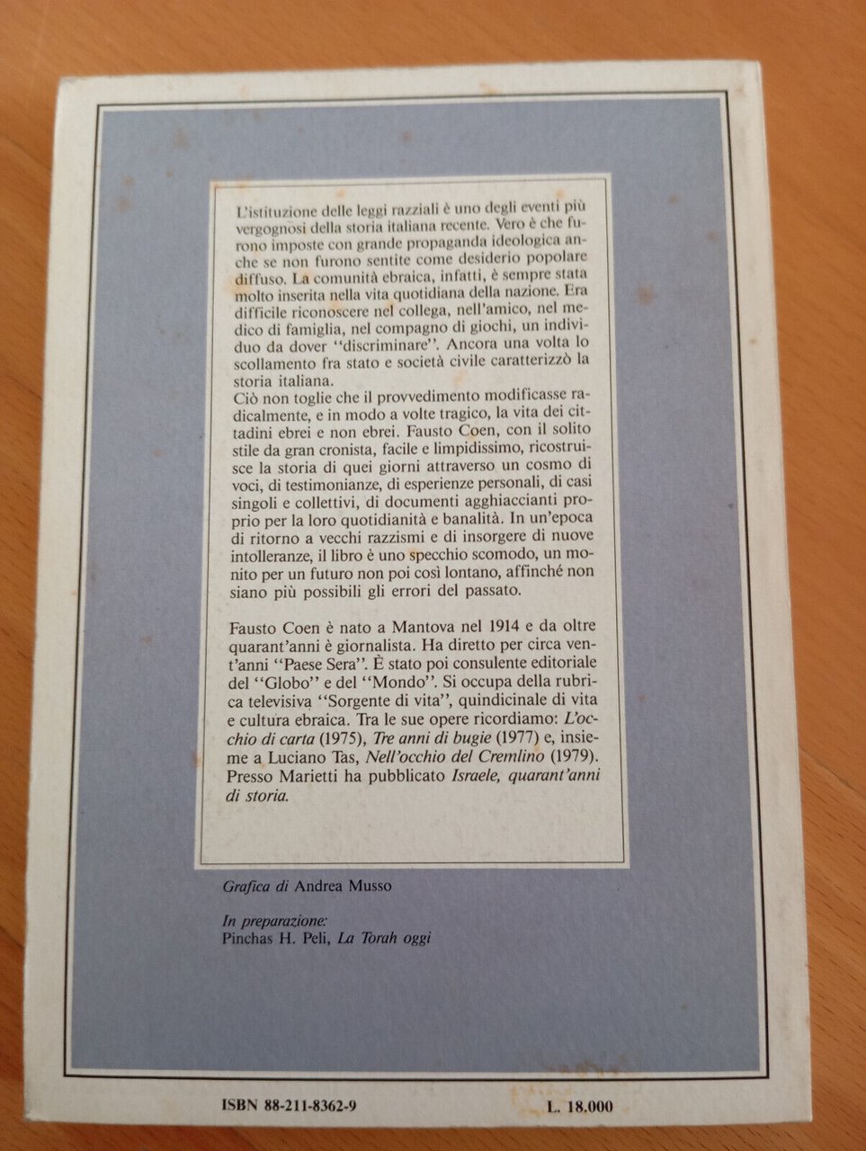 Italiani ed ebrei: come eravamo. Le leggi razziali del 1938, Fausto Coen, 1988