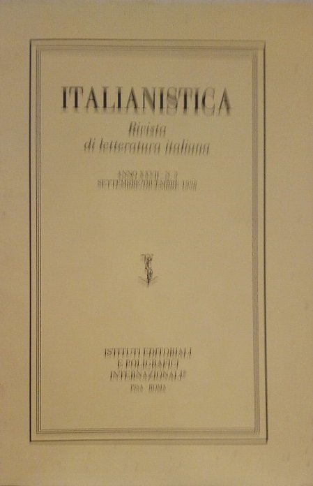 ITALIANISTICA - RIVISTA DI LETTERATURA ITALIANA - ANNO XXVII, 3, SETTEMBRE/DICEMBRE 1998