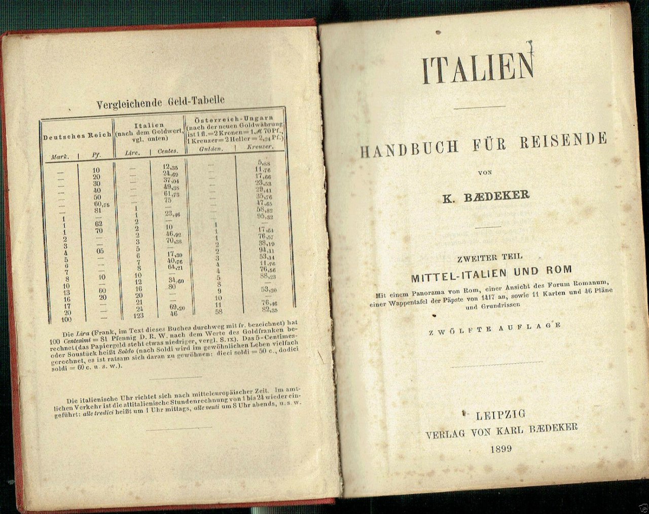 ITALIEN HANDBUCH FUR REISEND LEIPZIC 1899 NUMEROSE CARTINE PIU RIPIEGATE