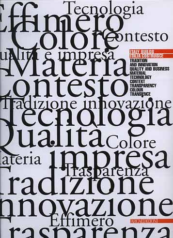 Italy builds. Tradition and Innovation, Quality and Business, Material, Technology, Context, Transparency, Colour, Transience.