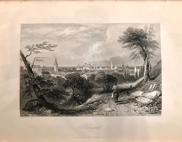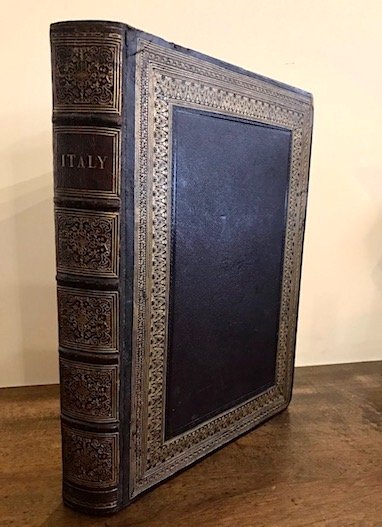 4to (cm. 33,5), 4 cc.nn. (compreso primo frontespizio inciso con medaglione raffigurante l’Italia), CVIII-160 pp. Con 60 splendide tavole f.t. protette da velina (di cui una in antiporta). Legatura editoriale in marocchino bruno a grana larga con nervi, ricchi freggi e titolo impresso in oro al ds. Grandi cornici ai piatti e dentelles interne. Tagli dorati. Ex libris di collezione privata al contropiatto anteriore. Salvo alcune sporadiche fioriture, più intense sulle prime due carte, esemplare in ottimo stato di conservazione. Prima edizione di questa celebre opera - preceduta dal saggio civile e politico di Mapei - che illustra località italiane più o meno note, secondo il consueto percorso tipico del Grand Tour.