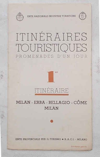 Itinéraires touristiques. Promenades d'un jour. 1er Itinéraire. Milan - Erba - Bellagio - Come - Milan.