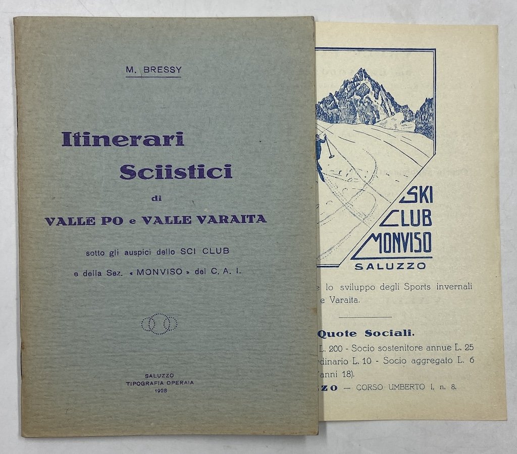 Brossura, cm 17x12, pp 45 (3); illustrazioni in nero, carta ripiegata in fine. Unito volantino cm 16x12, stampato in blu al solo recto, dello Ski Club Monviso di Saluzzo.