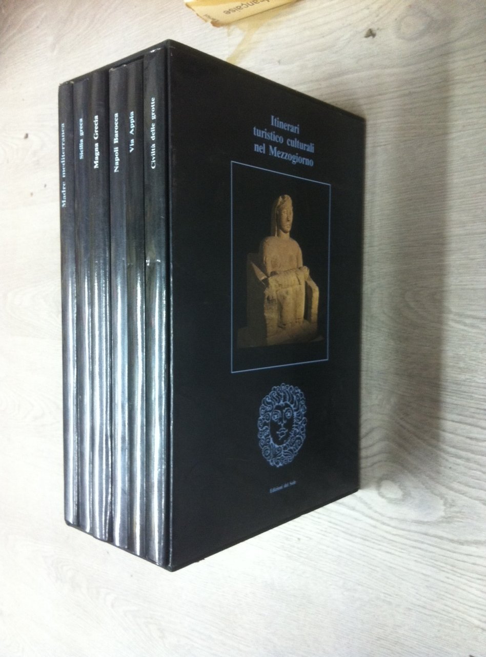 Napoli. Edizioni del sole volumi in 8°, tutti illustrati. Leg. edit., sovracc. Cofanetto editoriale contentente 6 volumi. 1. Damiano Fonseca Cosimo. Civiltà delle grotte, 1988, pp. 128. 2. Stazio Attilio. Via Appia, 1987, pp. 184. 3. Alisio Giancarlo. Napoli barocca, 1988, pp. 90. 4. Vallet G. - Stazio A. Magna Grecia, 1988, pp. 178. 5. Vallet G. Sicilia greca, 1988, pp. 144. 6. Moscati S. - Acquaro E. Madre mediterranea, 1987, pp. 170.